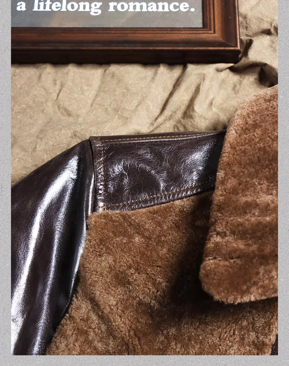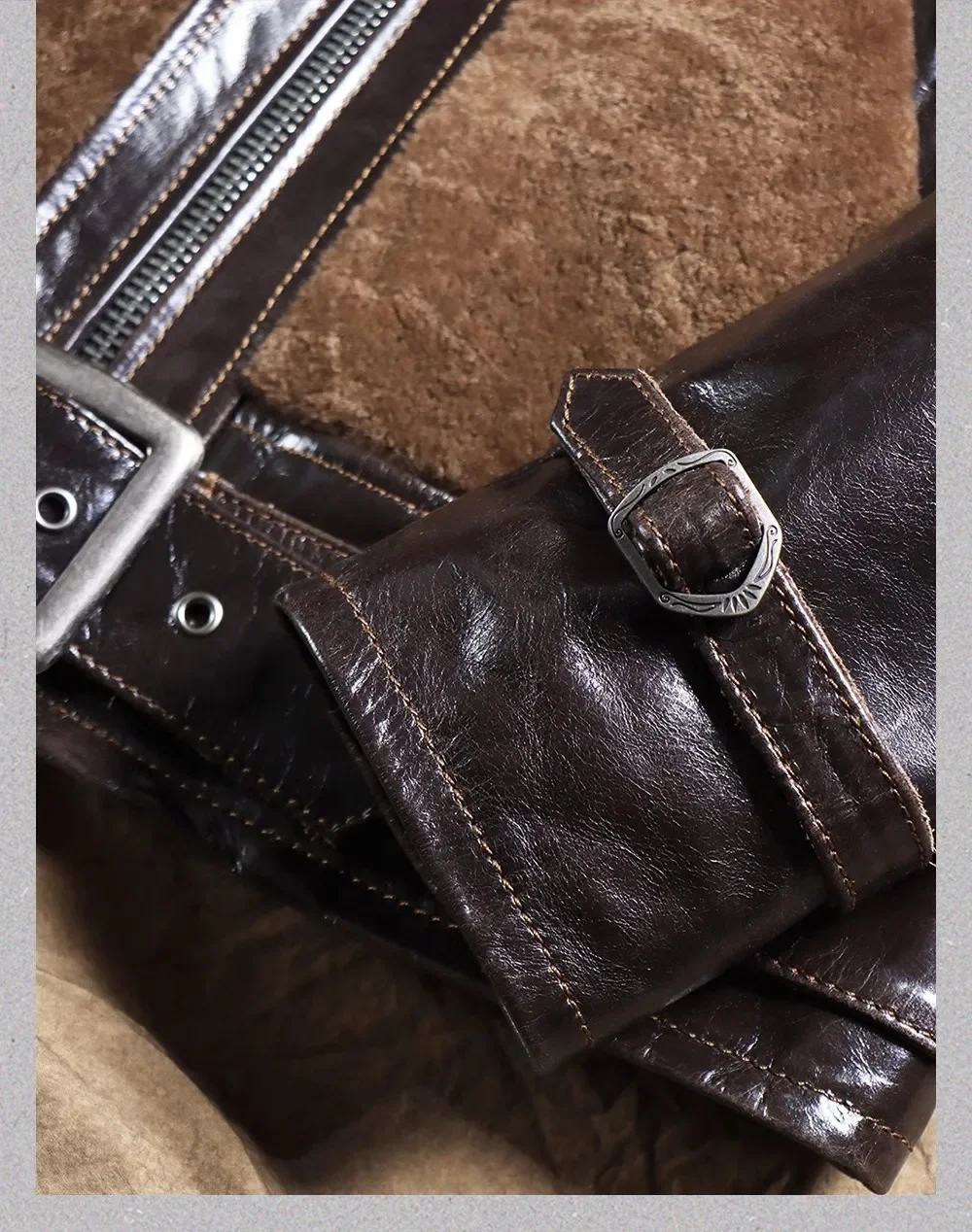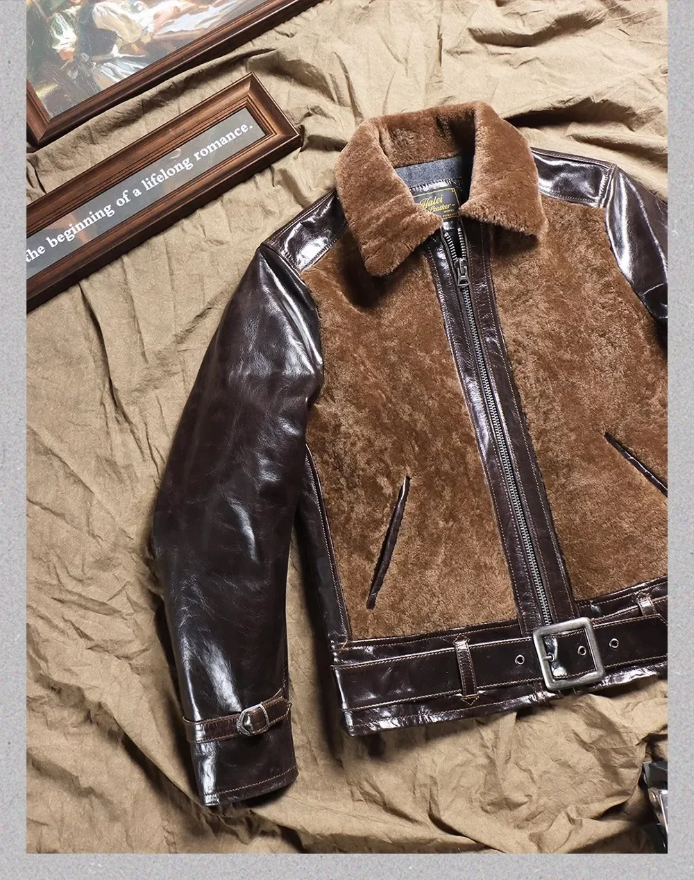 100% real fur jacket.winter warm thick leather coat.Vintage Motor Rider leather cloth.Fashion outdoor