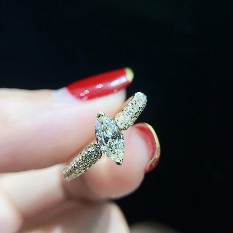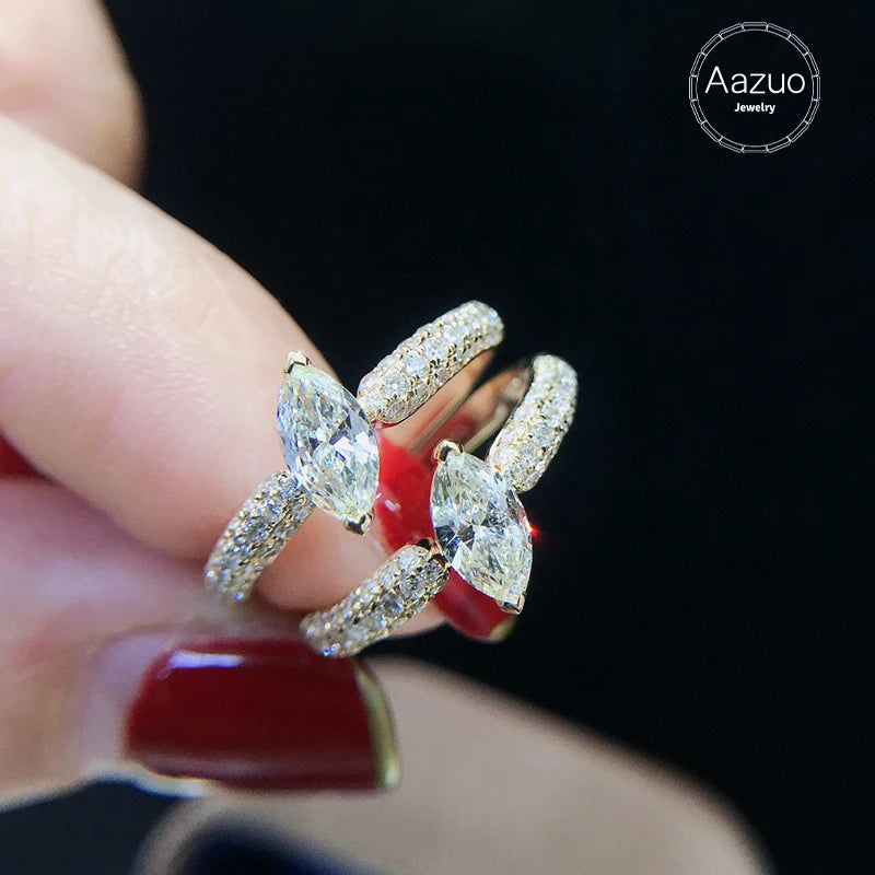 Aazuo 18K Orignal Yellow Gold Real Natrual Diamonds 0.70ct Classic Marquise Ring Fashion Gift For Woman&Lady Birthday Party