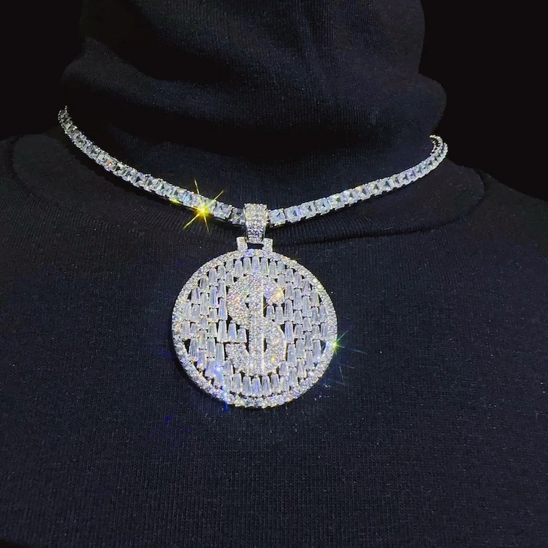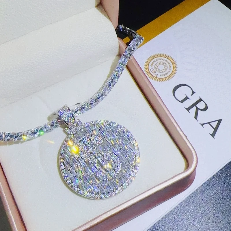 JEWE Custom Medal Pendant Hip Hop Baguette Moissanite Men Necklace Iced Out 925 Sterling Silver Gold Plated Chain Rapper Jewelry