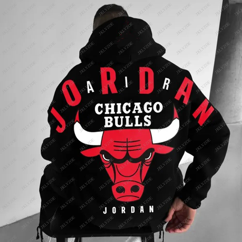 Street Basketball Print Hoodie Chicago Basketball Tee Men Fashion Casual Clothes Oversize Racing Bull Sweatshirt